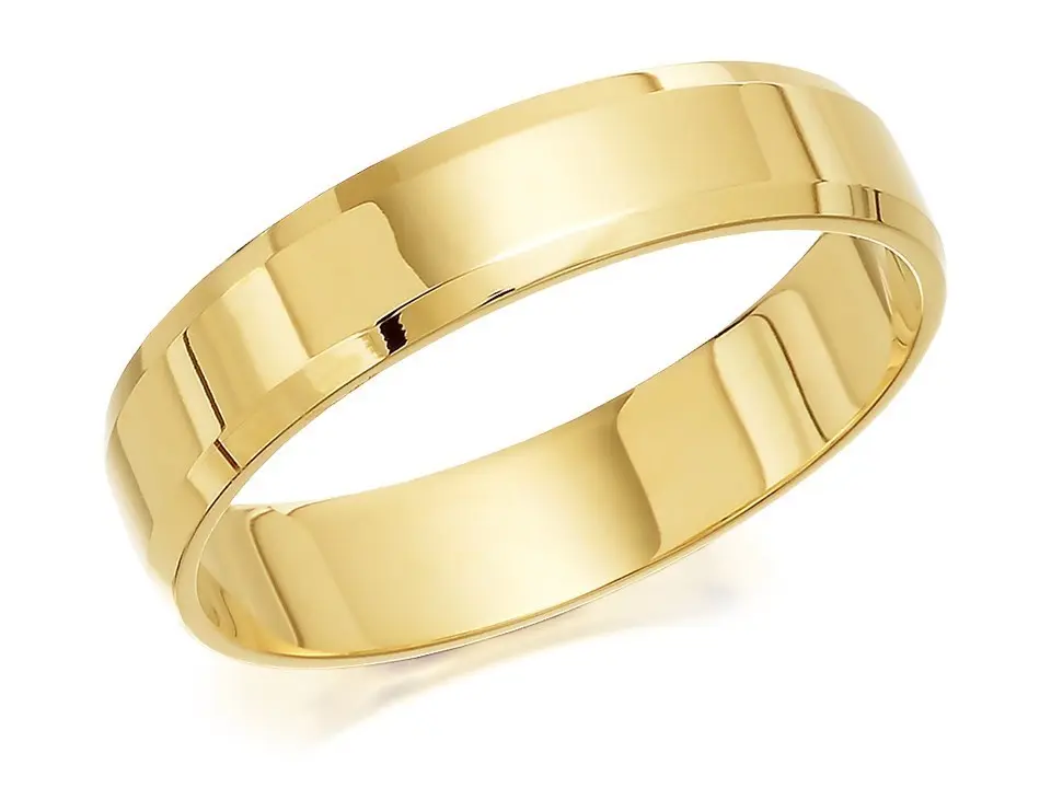 9ct Gold Flat Chamfered Edge Wedding Ring - 4mm - R4282
