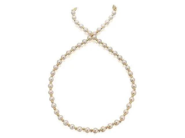 9ct Gold Freshwater Pearl And Bead Necklace - 18in - J9529