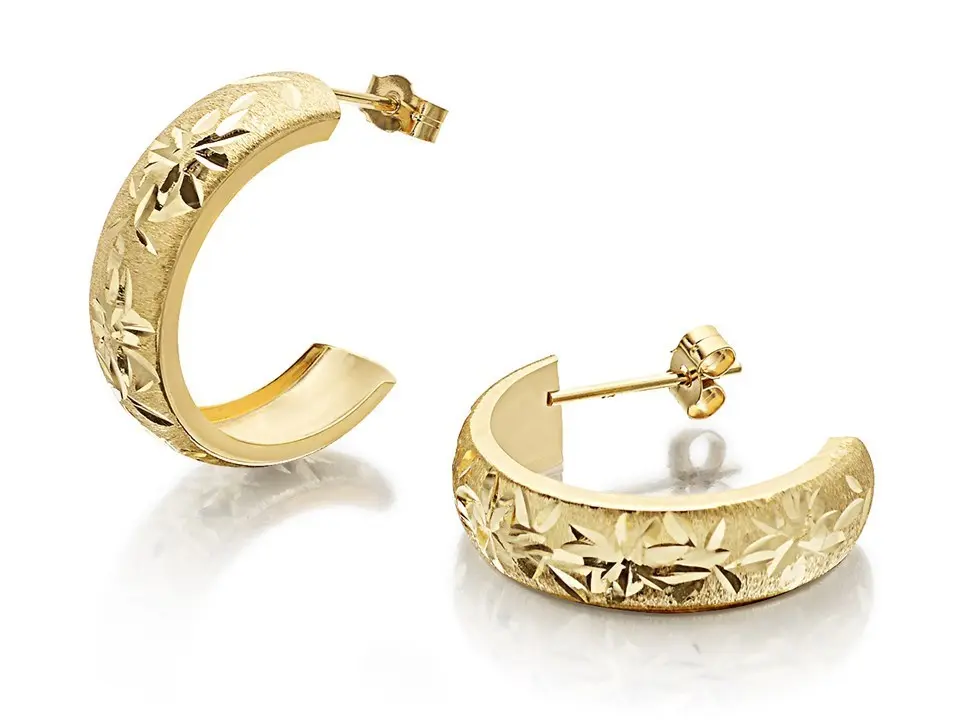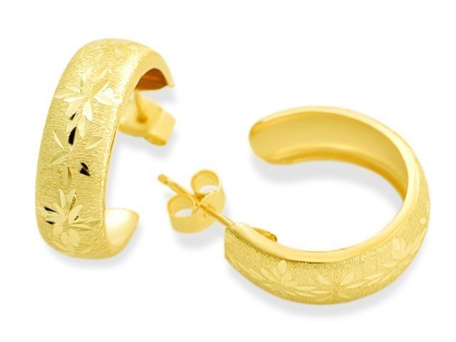 9ct Gold Frosted Half Hoop Earrings - 17mm - G2665
