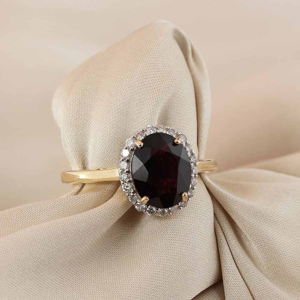 9ct Gold Garnet And Diamond Cluster Ring - 1/4ct Size Q - Z51183