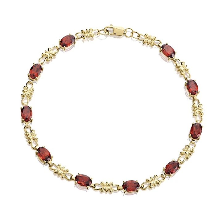 9ct Gold Garnet Bracelet - 7.25in - G8347