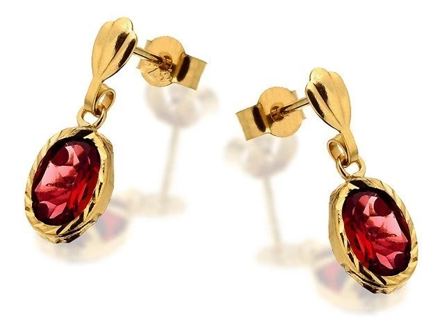 9ct Gold Garnet Drop Earrings - 15mm drop - G1801