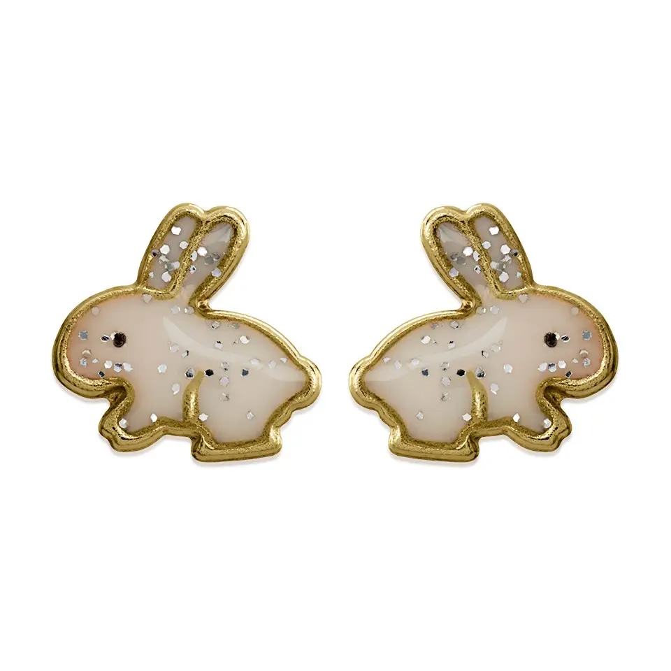 9ct Gold Glitter Enamel Bunny Stud Earrings - 8mm - G0854