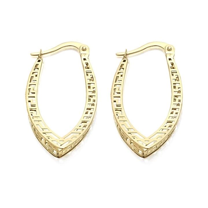 9ct Gold Greek Key Creole Hoop Earrings - 26mm - G4150