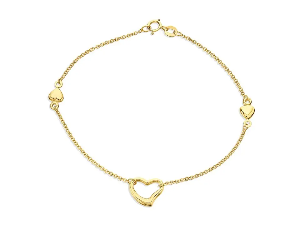 9ct Gold Heart Bracelet - 7.5in - G8336