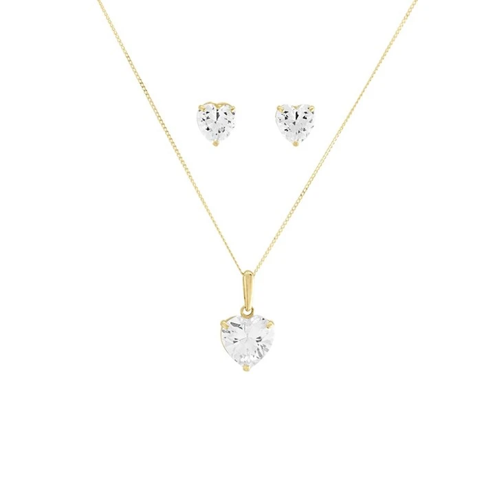 9ct Gold Heart Cubic Zirconia Necklace And Earrings Gift Set - G5016