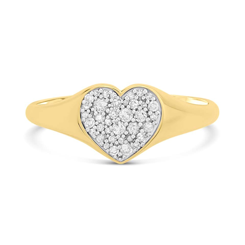 9ct Gold Heart Pave-Set Diamond Ladies Signet Ring - R2524
