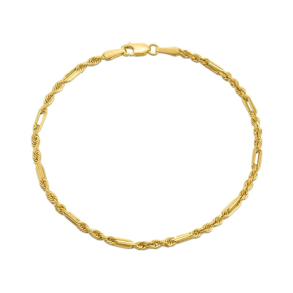9ct Gold Hollow Figarope 7.25in Bracelet - G64109