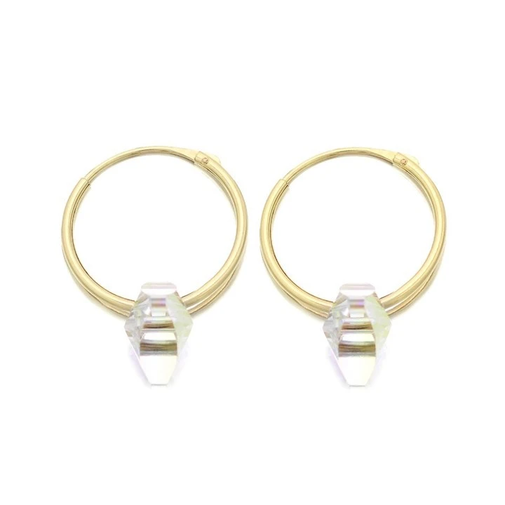 9ct Gold Hoop Earrings With Aurora Borealis Crystal - 14mm - G2415