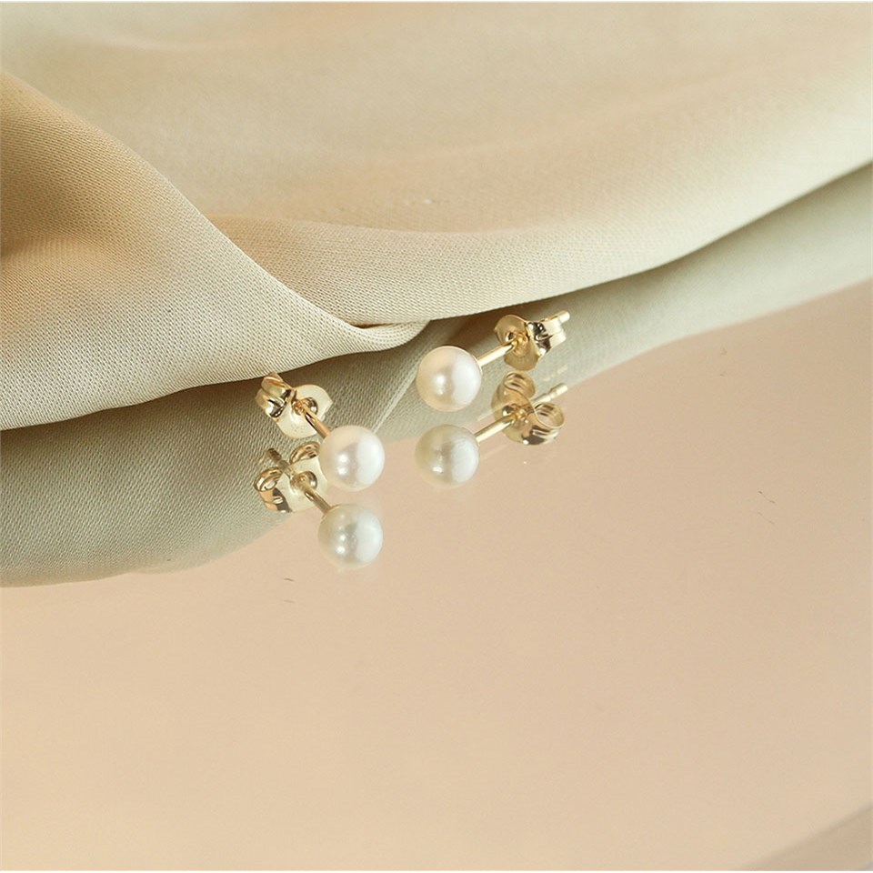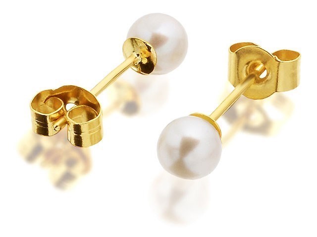 9ct Gold Japanese Akoya Cultured Pearl Stud Earrings - 3.5-4mm - G0475