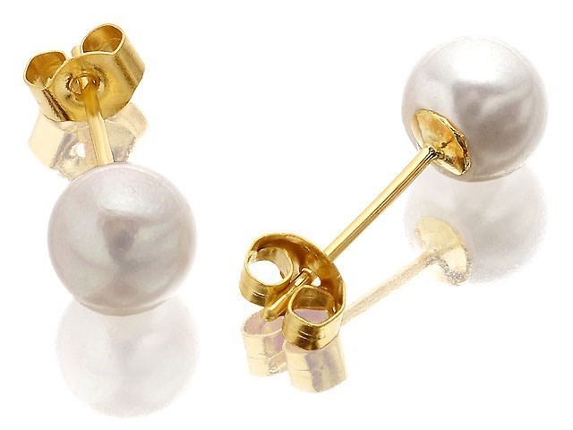 9ct Gold Japanese Akoya Cultured Pearl Stud Earrings - 5-5.5mm - G0477