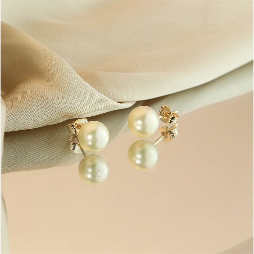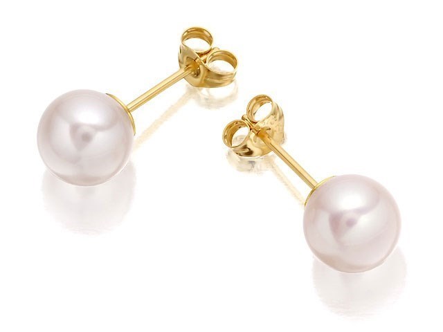 9ct Gold Japanese Akoya Cultured Pearl Stud Earrings - 6.5-7mm - G0479