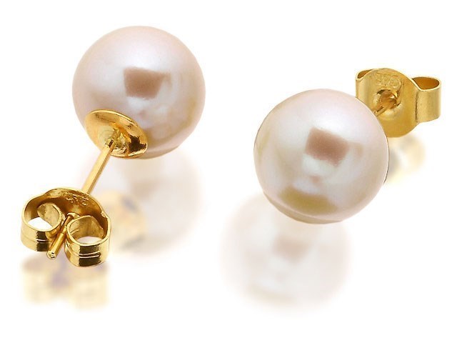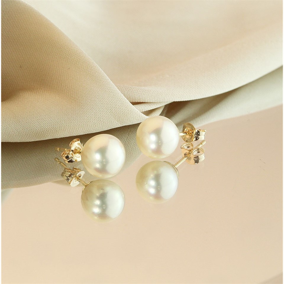 9ct Gold Japanese Akoya Cultured Pearl Stud Earrings - 7.5-8mm - G0481