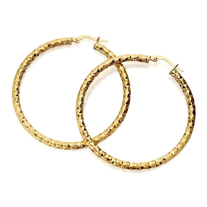 9ct Gold Large Diamond Cut Hoop Earrings - 44mm - G4303