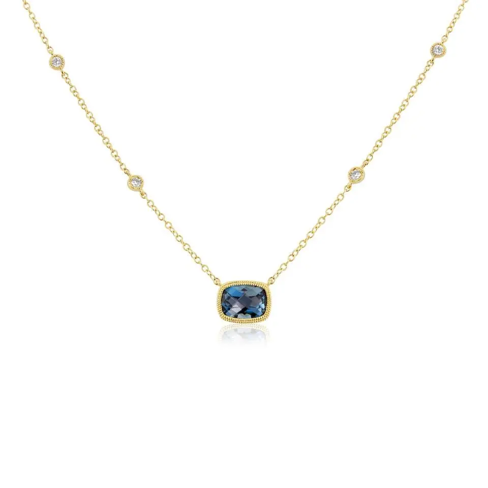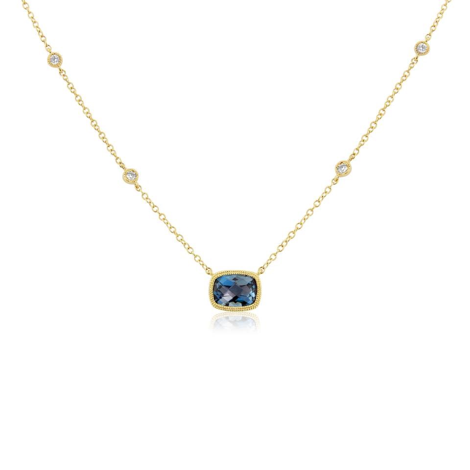 9ct Gold London Blue Topaz And Diamond Necklace - D87010