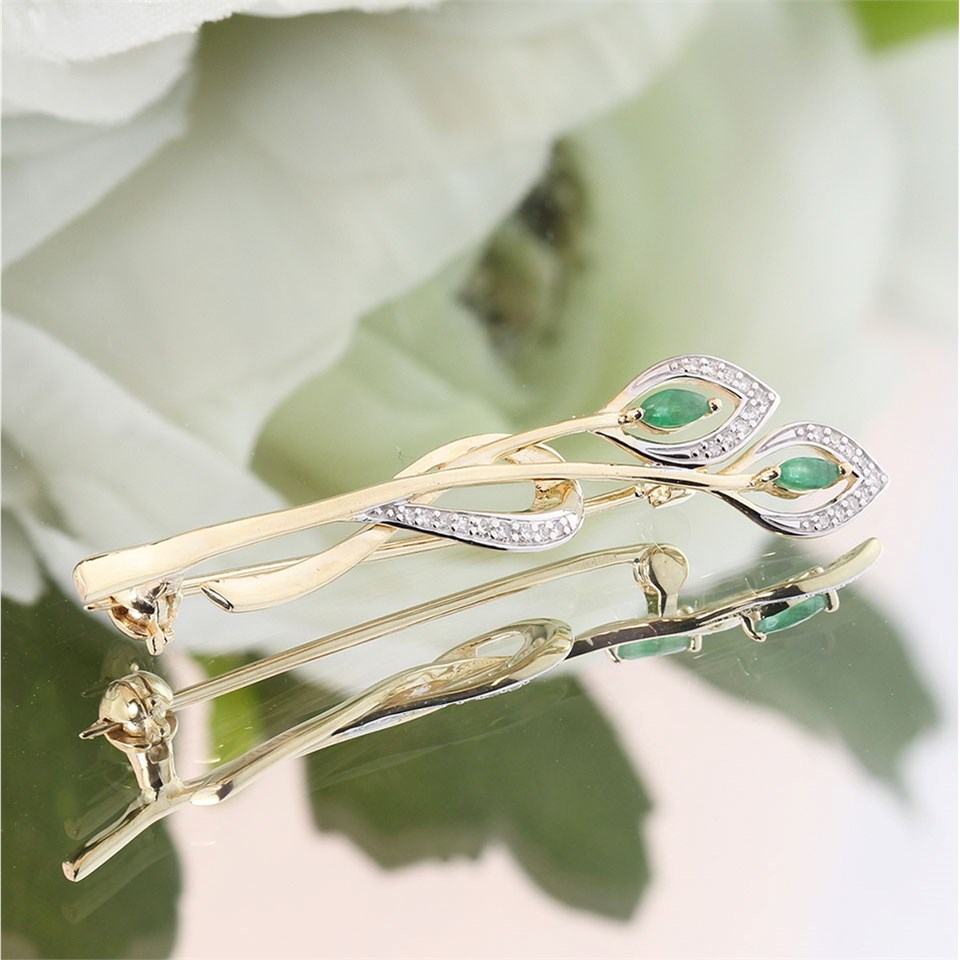 9ct Gold Marquise Emerald And Diamond Brooch - D95168
