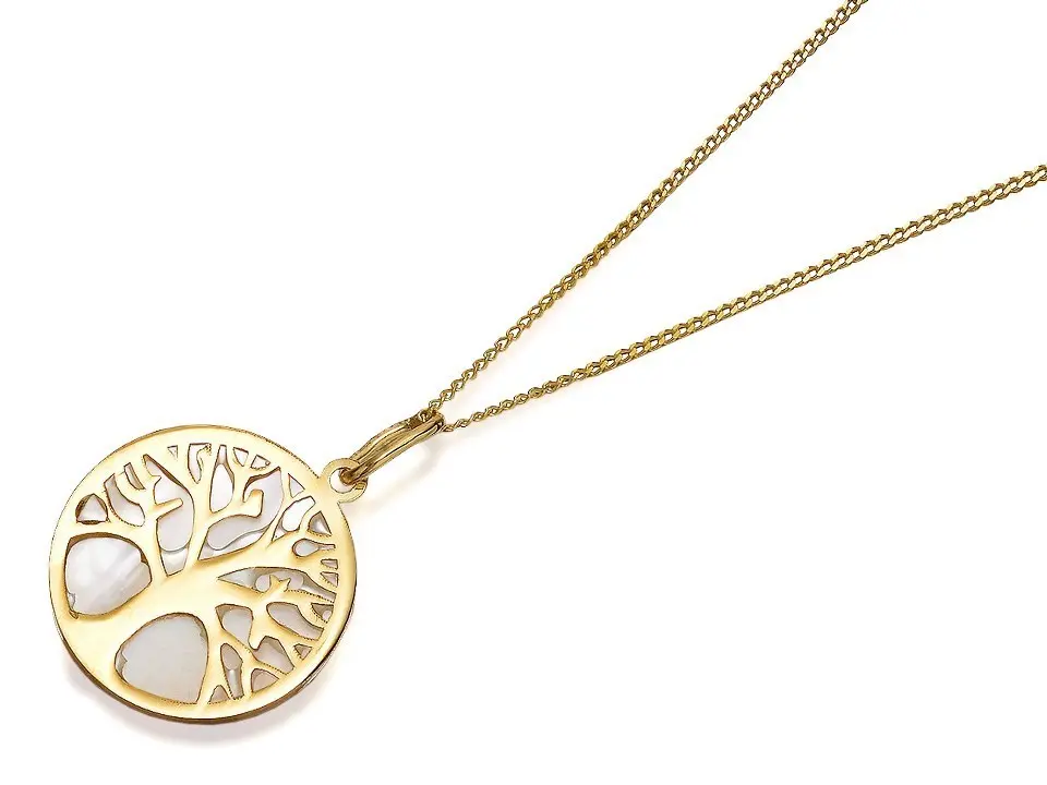 9ct Gold Mother Of Pearl F.Hinds Tree Of Life Necklace - R8219