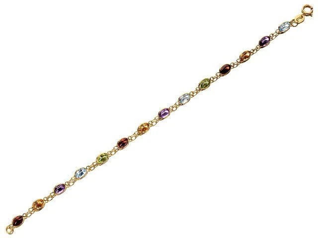 9ct Gold Multi Stone Bracelet - 7.5in - G8341