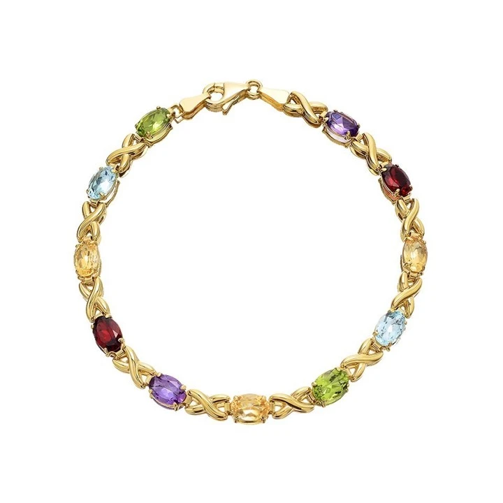 9ct Gold Multi Stone Kisses Bracelet - 7.25in - G8303
