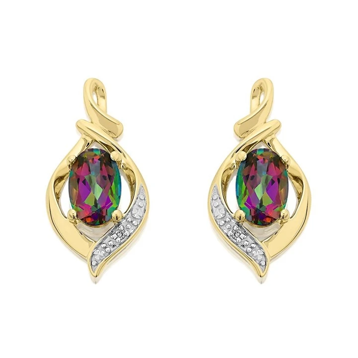 9ct Gold Mystic Topaz And Diamond Stud Earrings - 16mm - G0455