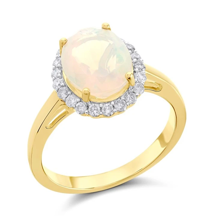 9ct Gold Opal And Diamond Cluster Ring - 1/4ct - D8471