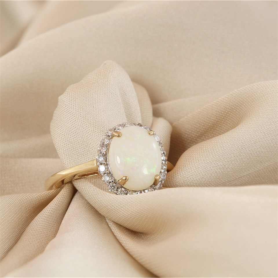 9ct Gold Opal And Diamond Cluster Ring - 1/4ct - Z51184