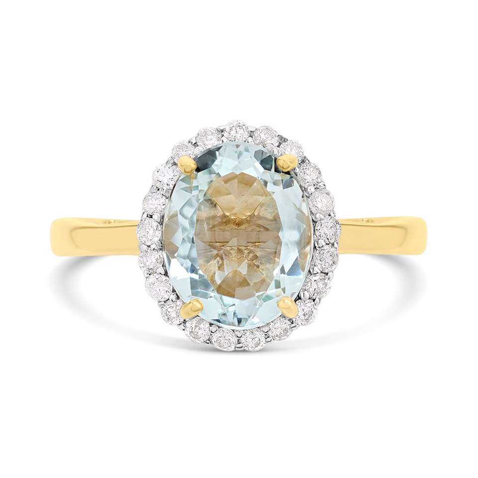 9ct Gold Oval Aqua & Diamond Cluster Ring, 1/4ct. Size M - Z51181
