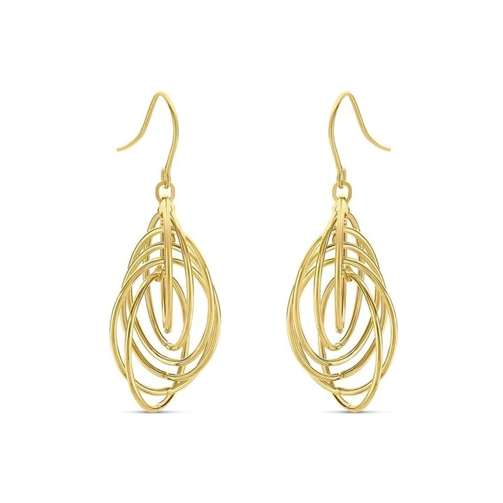 9ct Gold Oval Hoop Drop Earrings - 42mm drop - G1445
