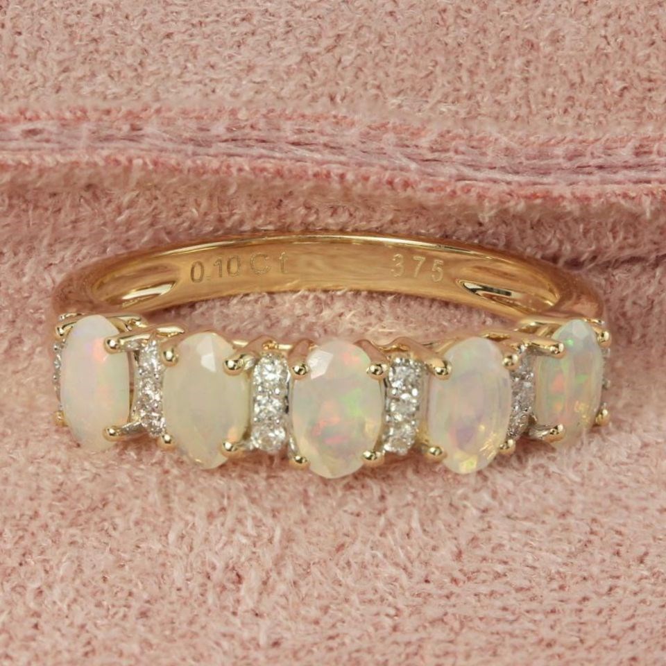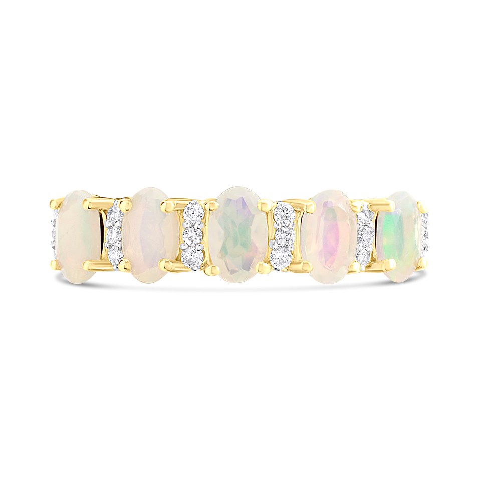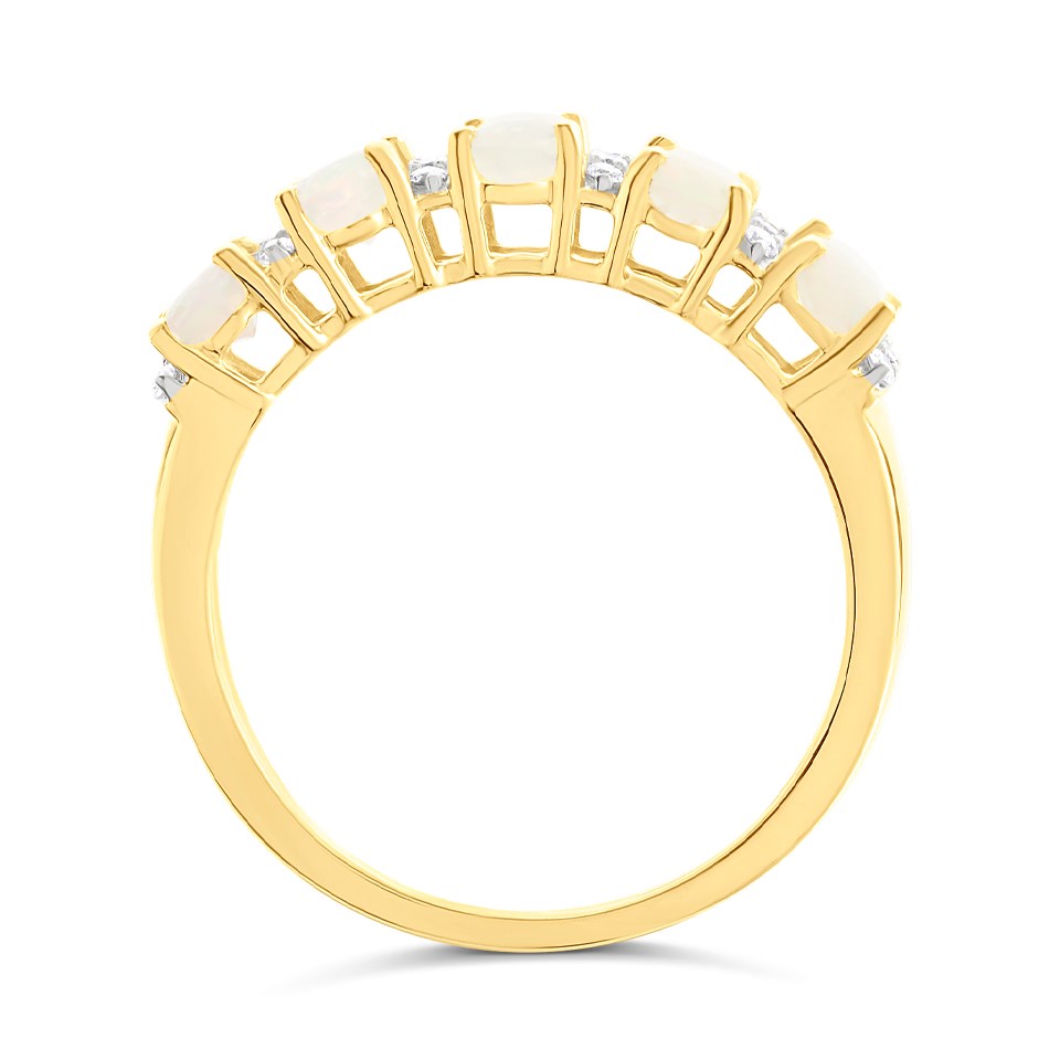 9ct Gold Oval Opal And Diamond Half Hoop Ring - D8323