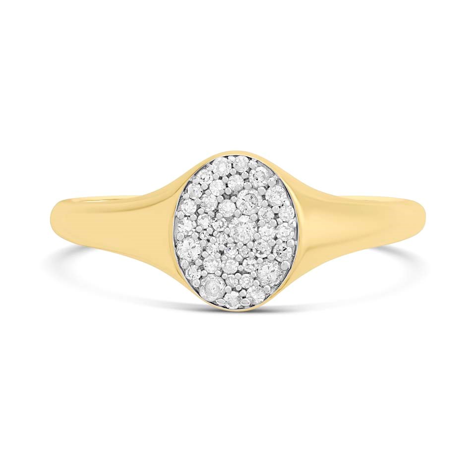9ct Gold Oval Pave-Set Diamond Ladies Signet Ring - R2523