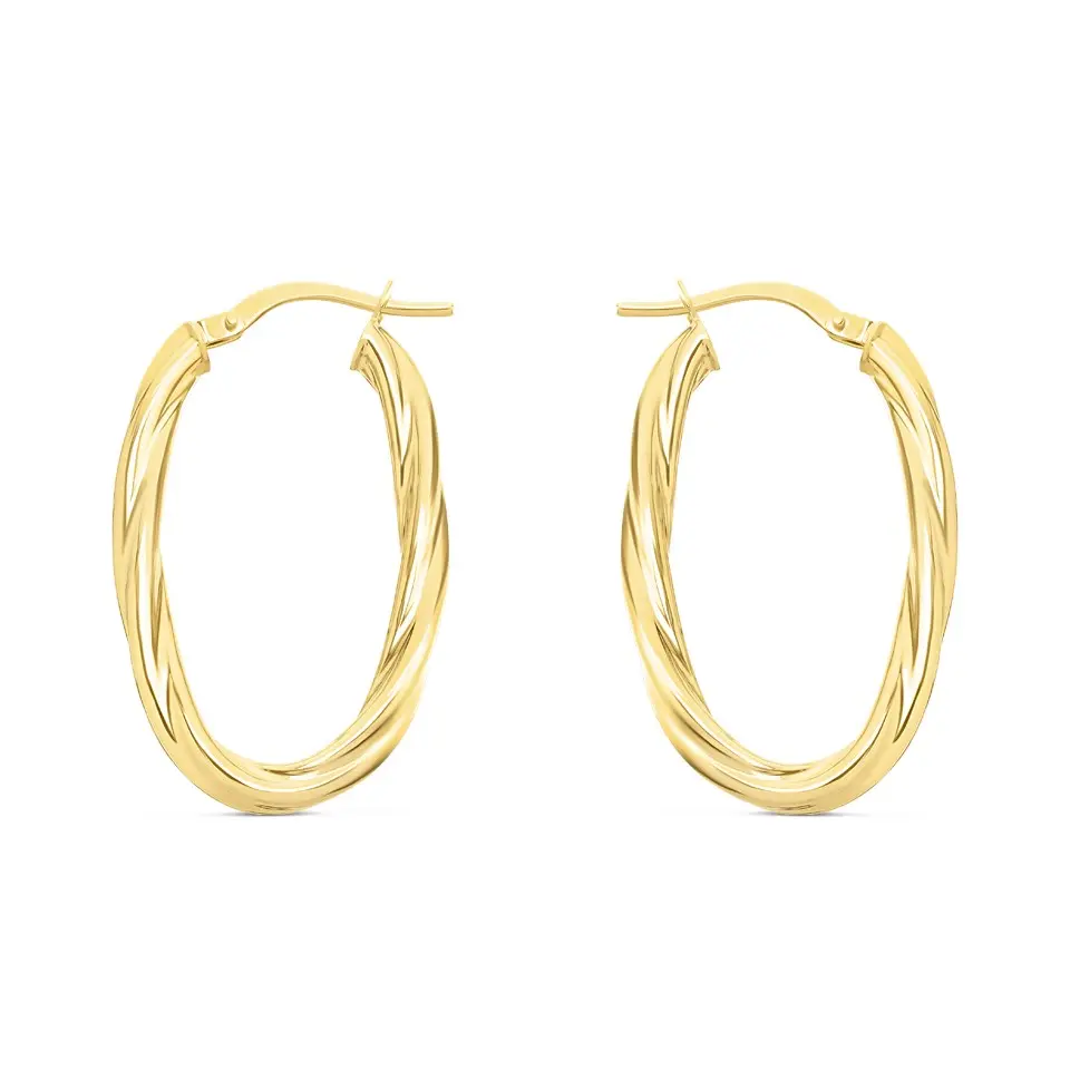 9ct Gold Oval Twist Hoop Earrings - 30mm - G41124