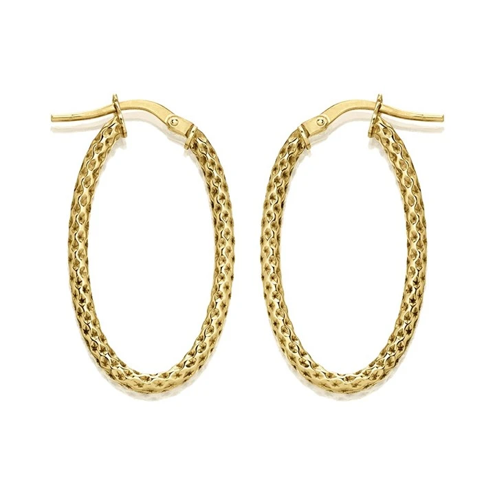 9ct Gold Patterned Hoop Earrings - 32mm - G41166