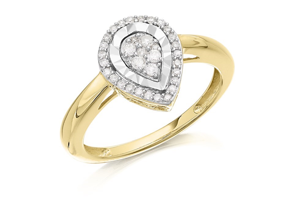 9ct Gold Pear Diamond Cluster Ring - 20pts - D9275
