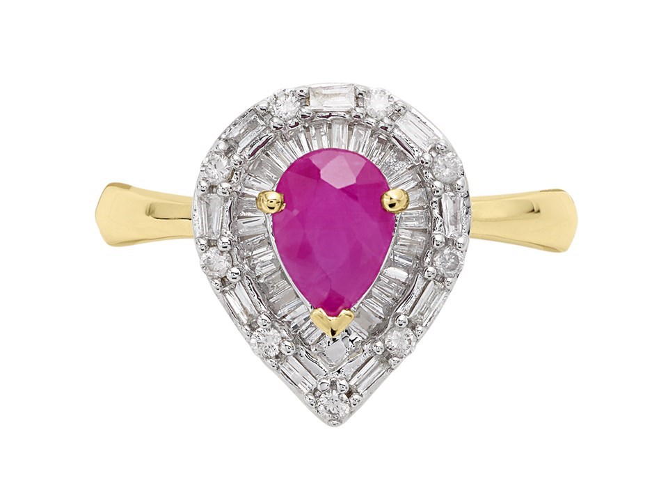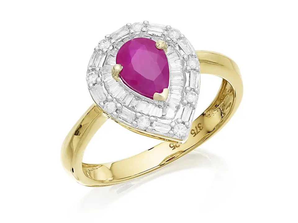 9ct Gold Pear Ruby And Diamond Cluster Ring – 1/4ct - D7431