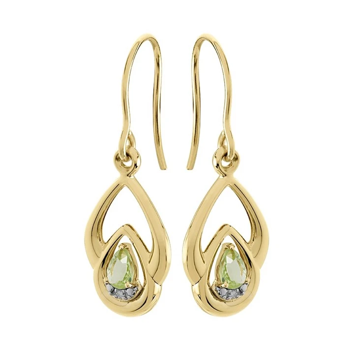 9ct Gold Peridot And Diamond Hook Wire Earrings - 28mm drop - G1835