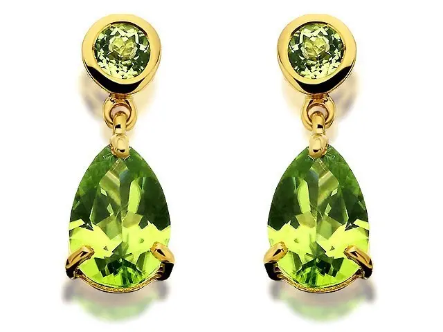 9ct Gold Peridot Drop Earrings - 16mm drop - G1825