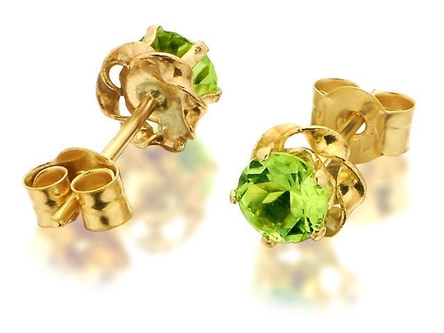 9ct Gold Peridot Earrings - 4mm - G0426
