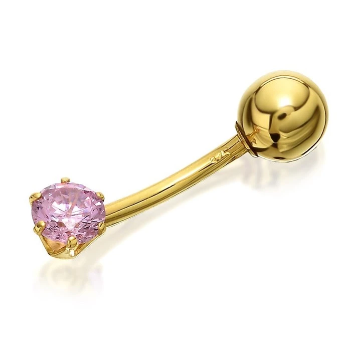 9ct Gold Pink Cubic Zirconia Belly Bar - 10mm - G4715