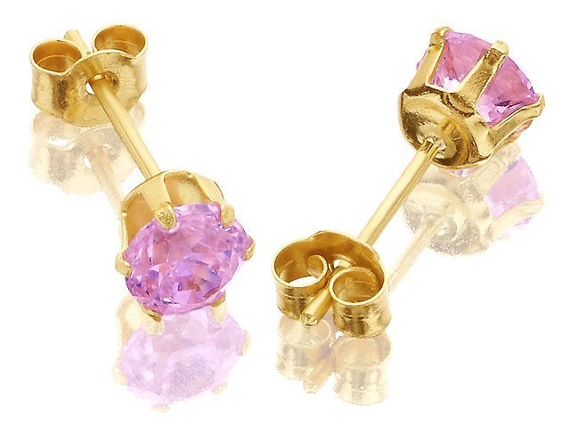 9ct Gold Pink Cubic Zirconia Solitaire Earrings - 4mm - G2732