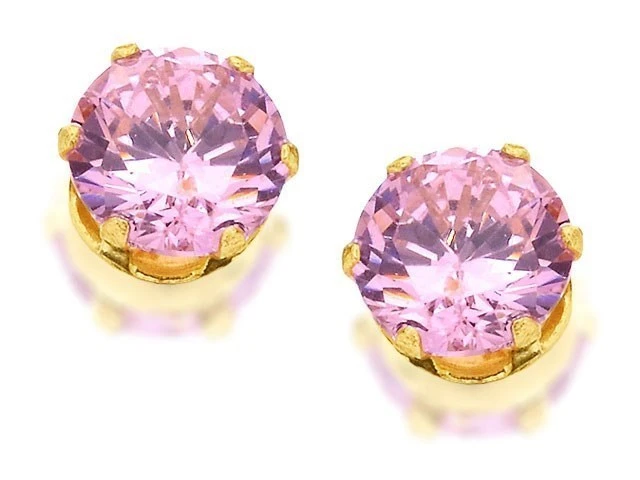 9ct Gold Pink Cubic Zirconia Solitaire Stud Earrings - 5mm - G2781