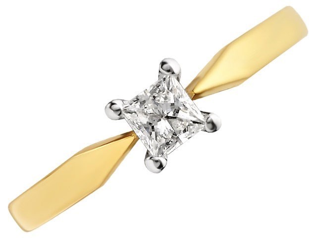 9ct Gold Princess Cut Diamond Solitaire Ring - 1/4ct - AGI Certificated - D5013