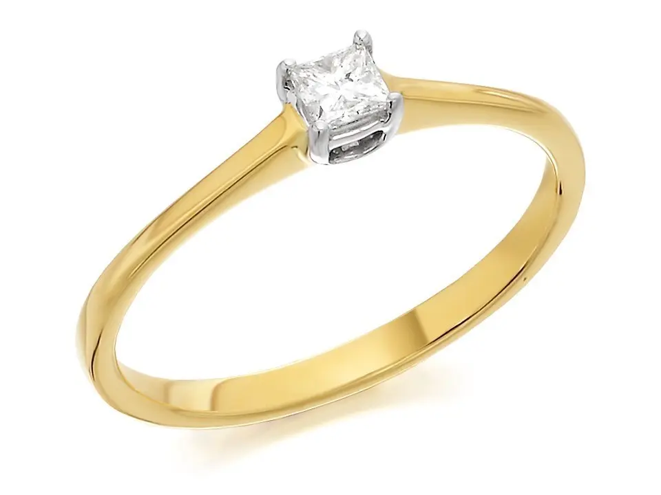 9ct Gold Princess Cut Diamond Solitaire Ring - 15pts - AGI Certificated - D5012