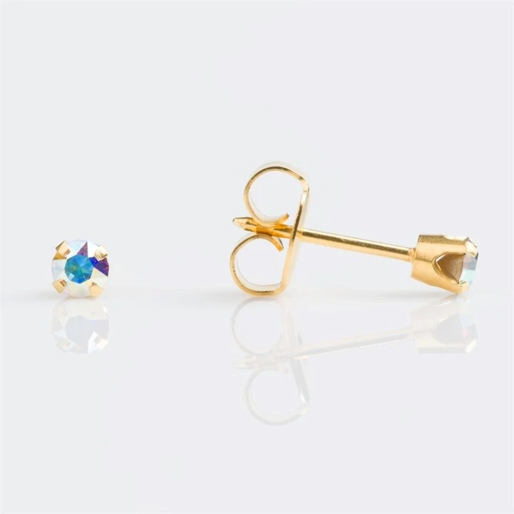 9ct Gold Rainbow Cubic Zirconia Ear Piercing Studs - 3mm - S75915