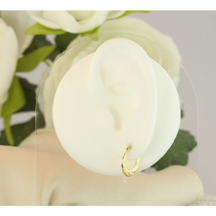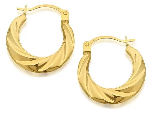 9ct Gold Ribbed Creole Hoop Earrings - 14mm - G4195