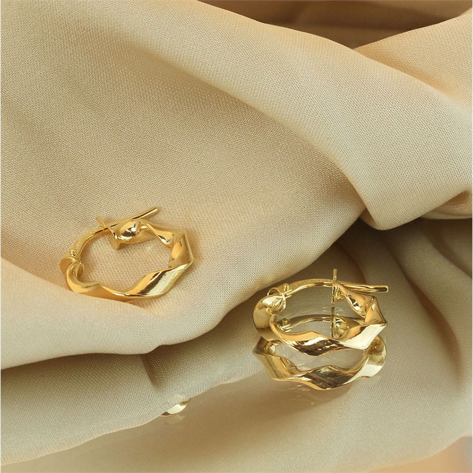 9ct Gold Ribbon Twist Hoop Earrings - 15mm - G2096