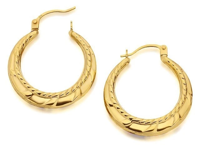 9ct Gold Rope Design Creole Hoop Earrings - 24mm - G2475