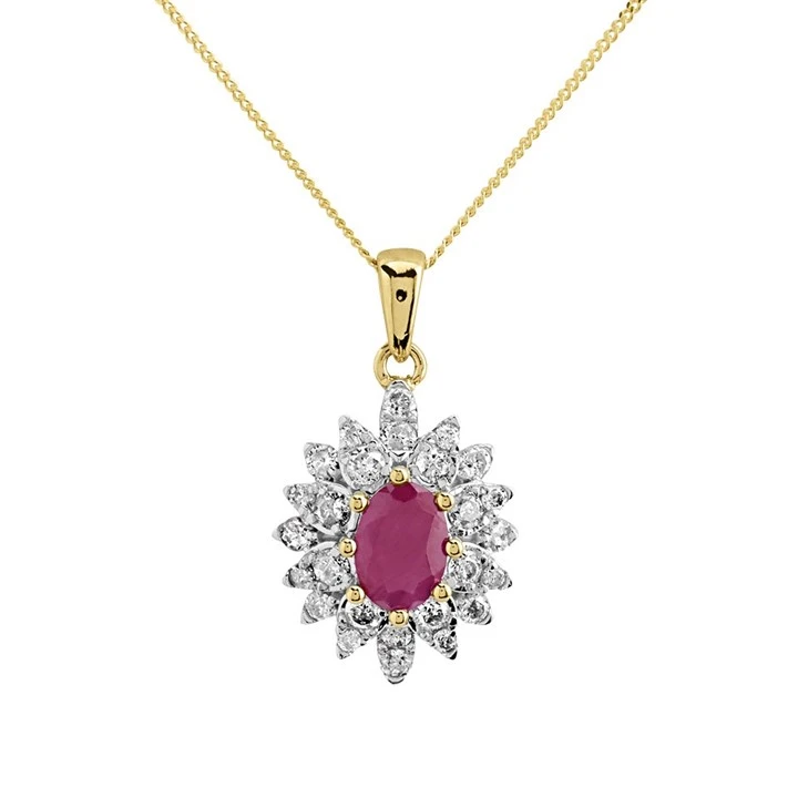 9ct Gold Ruby And Diamond Cluster Necklace - 55pts - D95145