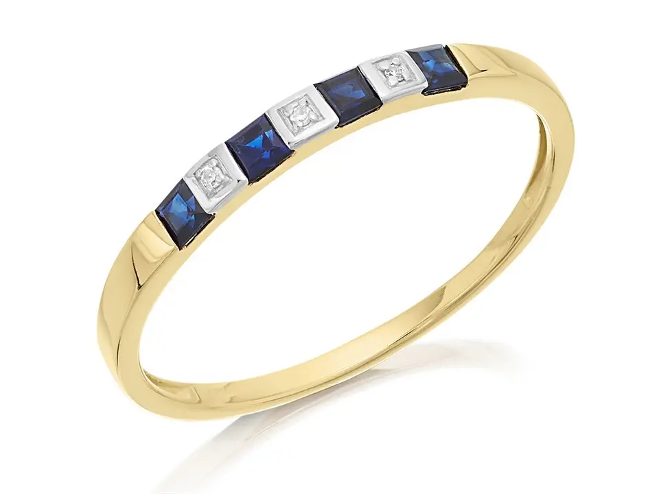 9ct Gold Sapphire And Diamond Half Eternity Ring - D8115