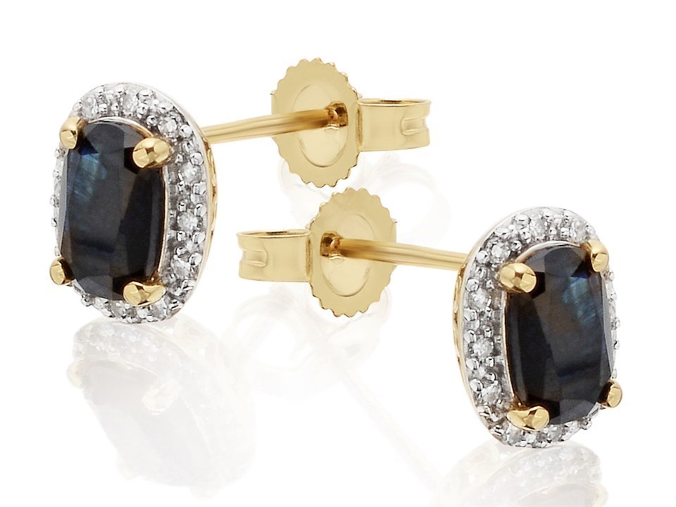 9ct Gold Sapphire And Diamond Stud Earrings - 8pts per pair - EXCLUSIVE - D5464