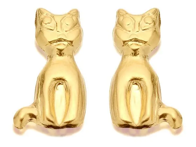 9ct Gold Sophisticated Cat Stud Earrings - 9mm - G0382